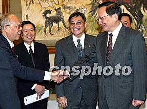 唐家璇在釣魚臺國賓館會見香港前高級公務員協(xié)會代表團。他在會見前回答香港記者有關(guān)香港政制發(fā)展問題時作以上表示。