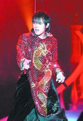 8時15分,身穿披風的周杰倫唱著《雙節(jié)棍》出場,臺下的歌迷立即揮舞手中由主辦者派發(fā)的橙色充氣棒,現(xiàn)場隨即變成一片橙色的海洋。接著周杰倫以每唱三四首歌就換一套衣服的頻率不停地轉換自己的形象,當晚周杰倫總共換了11套絢麗奪目的服飾,包括有皮草大衣、盔甲裝、繡有龍圖案的唐裝、黑色和白色的西裝以及綠色的短袖運動裝等。除此之外,周杰倫還變身為“空中飛人”和“籃球健將”。其中他做空中飛人出場的時候還吊鋼絲做特技,令臺下的觀眾發(fā)出一陣陣的尖叫聲;而當他變身籃球健將的時候也邀請了一位高大的黑人球員上臺在動感的音樂聲中與他一起表演籃球絕技,向臺下三萬多歌迷“秀”出自己不凡的球技。