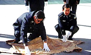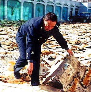 拉薩海關緝私局副局長李建文撣撣身上的土告訴記者,10月10日他們將這批動物皮張從查獲地點運回拉薩海關時,動用了全部警力,花了3個小時才將皮張數量點清。他說,根據黑市上的價格,這批動物皮張的總價值超過1000萬元。“當然,由于孟加拉虎、金錢豹和水獺都是瀕危動物,依照國家法律和國際公約都是明令禁止射殺、販賣的,所以它們的價值遠非金錢可以衡量!崩罱ㄎ耐瑫r強調。