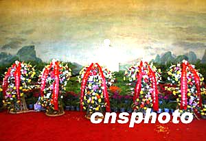 十二月二十六日是毛澤東誕辰110周年,北京毛主席紀(jì)念堂內(nèi)擺放著中共中央、國(guó)務(wù)院、全國(guó)人大常委會(huì)、中央軍委、全國(guó)政協(xié)敬獻(xiàn)的花籃。中新社記者:任晨鳴