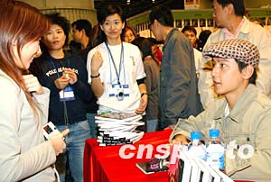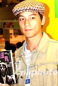香港藝員吳彥祖十二月二十六日在香港會(huì)展中心舉行的“書節(jié)2003”上,為電影原著小說《妖夜回廊》簽名。中新社記者:錢興強(qiáng)