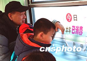 12月27日廣東省宣布發(fā)現(xiàn)一例SARS疑似病例后,北京各公共交通工具包括剛剛開通的地鐵八通線繼續(xù)堅持嚴格的消毒制度。作者:張雷