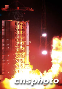 一連串短促清脆的指令發(fā)出后,金牌火箭“長(zhǎng)征二號(hào)丙”改進(jìn)型運(yùn)載火箭噴射出桔紅色的熊熊烈焰,在驚天動(dòng)地的呼嘯聲中沖天而起,托舉著“探測(cè)一號(hào)”衛(wèi)星向九霄云外飛去;鸺斤w越高、越飛越遠(yuǎn),只一霎那功夫,就從人們的視線(xiàn)中消失了。