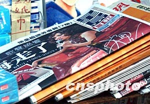 藝人梅艷芳因子宮頸癌導致肺功能失調(diào),于十二月三十日凌晨二時五十分在香港病逝,香港部份媒體連夜趕工再版,刊登最新消息,致使三十日報紙有不同版本。圖為清晨香港報攤加緊整理報紙以饗讀者。中新社記者:錢興強