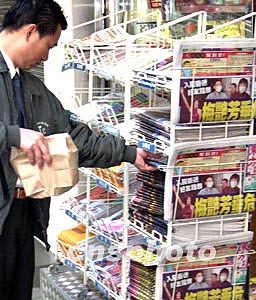 十二月三十日凌晨,香港藝人梅艷芳逝世,清晨許多港人紛紛購報紙了解梅艷芳逝世詳情。中新社記者:錢興強
