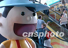 第三十屆香港玩具展元月六日在香港會展中心開幕,吸引全球眾多玩具商參展,圖為醒目的卡通形象引人注目。中新社記者:錢興強(qiáng)