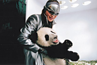 不過,由于保護(hù)中心要求必須在熊貓生活的環(huán)境拍攝,令攝制隊(duì)大感頭痛,最后決定專程飛往四川拍攝,還為熊貓購買保險(xiǎn),保險(xiǎn)費(fèi)是三百萬元。而這次參與演出的熊貓叫“英英”,七個(gè)月大,重一百磅,十分可愛。女主角楊紫瓊都被“英英”搶去不少風(fēng)頭!坝⒂ⅰ痹谂臄z期間有三個(gè)醫(yī)生侍候,拍攝時(shí)還規(guī)定攝制組人員及演員要全身消毒,楊紫瓊戴的面具也不例外,更只有楊紫瓊才可以觸摸它。