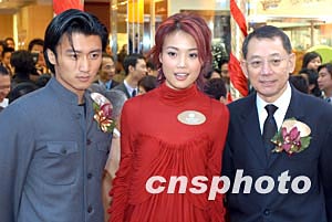 歌影紅星謝霆鋒、成龍、容祖兒、人氣組合Twins及名人何鴻燊等人1月9日在香港銅鑼灣親臨英皇鐘表珠寶分店開(kāi)幕禮,并舉行剪彩儀式。中新社記者:鄧慶樂(lè)