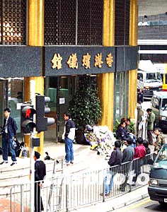 香港著名藝人梅艷芳喪禮將于1月11日設(shè)靈,12日出殯,10日各地傳媒陸續(xù)聚集香港殯儀館外拍攝準(zhǔn)備情況。中新社記者:洪少葵
