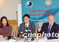 香港警方及國際刑警組織秘書處于元月十三日在港聯(lián)合舉辦“國際刑警全球聯(lián)絡(luò)系統(tǒng)I-24/7”訓(xùn)練課程及工作坊開幕儀式,該系統(tǒng)為國際刑警各分局進(jìn)行了技術(shù)革新,提供一個更加安全有效,并且更符合成本效益的通訊系統(tǒng),以供亞洲地區(qū)中心局的警務(wù)人員參加。圖為國際刑警組織秘書處負(fù)責(zé)有關(guān)聯(lián)絡(luò)系統(tǒng)的主管Stanley morris(右一)在儀式上向傳媒介紹有關(guān)情況。作者:錢興強(qiáng)