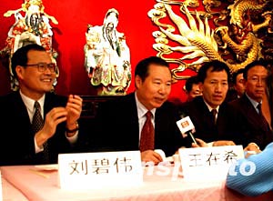 中國國臺辦副主任王在希(左二)十三日抵達(dá)紐約與四百多名僑胞見面,非常坦率地闡述了中國政府對臺灣問題的立場和近期的政策,表示中國政府對任何“臺獨(dú)”分裂活動都有充分準(zhǔn)備,有決心、有能力、有辦法確保國家主權(quán)和領(lǐng)土的完整,中國駐紐約總領(lǐng)事劉碧偉(左一)、美東華人社團(tuán)聯(lián)合總會共同主席梁冠軍(左三)等出席了見面會。中新社記者:趙海燕