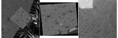 這是美國“勇氣”號(hào)火星車開上火星表面后拍下的火星表面土壤的近距離合成照片。