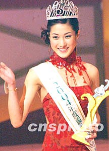 應(yīng)屆港姐曹敏莉一月十七日晚在香港舉行的2004年度國際華裔小姐競選決賽上獲得亞軍。作者:錢興強