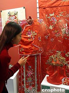 著名的東岳廟一月二十一日至二十八日將舉辦第三屆北京民俗文化節(jié)暨第六屆東岳廟會,正在布置中的古典婚慶服裝營造了熱烈的節(jié)日氣氛。中新社記者:張勤