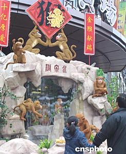 猴年將至,俏皮可愛的“金猴”成為了申城街頭迎新賀春的主角。二十日,一組生動(dòng)活潑的“金猴鬧春”賀年景觀吸引了不少路人。中新社記者:湯彥俊