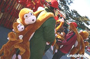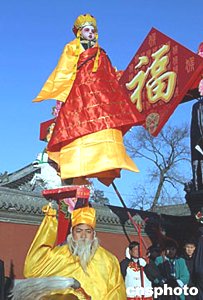 一月二十一日,第三屆北京民俗文化節(jié)暨第六屆東岳廟文化廟會(huì)隆重開幕,在廟會(huì)開幕式上來自河南新鄉(xiāng)的農(nóng)民藝術(shù)家身背架桿,正在表演“驚、險(xiǎn)、奇、巧”為特色的民間傳統(tǒng)節(jié)目“背樁”。中新社記者:張勤  北京地壇廟會(huì)拉開帷幕,本應(yīng)猴年初一登場(chǎng)的猴們迫不及待提前鬧春。作者:徐曦弋