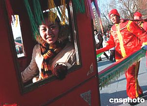 中國(guó)農(nóng)歷大年初一,北京各大公園別具特色的廟會(huì)活動(dòng)紅紅火火地開(kāi)始了,大觀園內(nèi)仿照中國(guó)古代新娘出嫁坐花轎的游樂(lè)項(xiàng)目,引來(lái)許多平日坐慣轎車的現(xiàn)代女性,鉆進(jìn)花轎品嘗舊時(shí)“新娘”滋味。中新社記者:王麗南