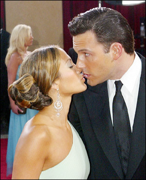 二00一年九月,珍妮佛洛佩茲梅開二度嫁給伴舞老公,但這段婚姻不滿十個(gè)月就告吹。二00一年底,珍妮佛洛佩茲在拍攝《Gigli》時(shí)與該片男主角本·阿弗萊克相識(shí)相戀,并秘密訂婚。