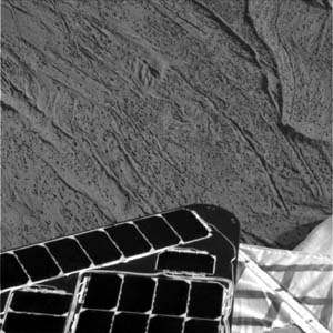 美國“機(jī)遇”號火星探測器成功登陸火星后,已傳回攝下的首批照片。據(jù)悉,照片顯示的是火星車和著陸艙,有些則記錄了火星地平面的大場景。