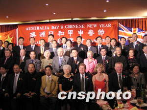 中新社悉尼一月二十六日電(記者劉雨生)笑聲、掌聲、喝彩聲彼落此起,鄉(xiāng)情、親情、友情四處洋溢。澳大利亞新南威爾士州華人華僑暨友好人士六百余人二十五日晚聚會(huì)悉尼中國城新富麗宮酒樓,熱烈慶祝澳洲日和中國猴年春節(jié)。