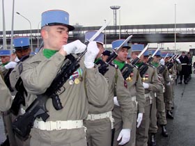 法三軍儀仗隊(duì)在做歡迎胡錦濤主席的準(zhǔn)備