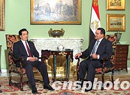 圖:胡錦濤與埃及總統(tǒng)穆巴拉克舉行會談