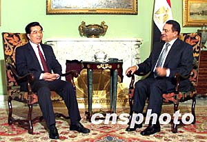 圖:胡錦濤與埃及總統(tǒng)穆巴拉克舉行會談