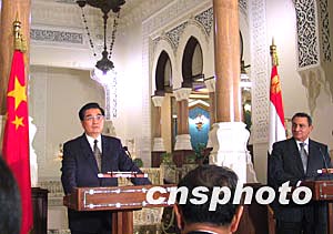 胡錦濤主席與穆巴拉克總統(tǒng)在會談后共同會見記者