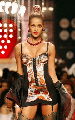 在巴西2004時裝周上,模特走秀展示設(shè)計師的性感新作。