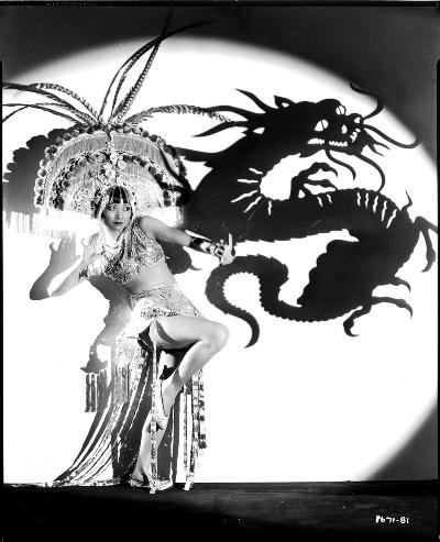 年僅19歲的黃柳霜,引起默片大明星費爾般克的注意,讓她在他1924年的大片“巴格達大盜”中演出主要配角。片中她穿著比基尼奴隸裝,死在費爾般克刀下,性感又楚楚可憐,讓她一夕揚名國際。