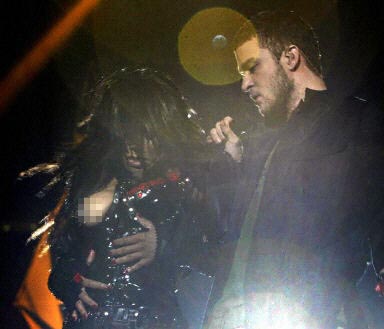 這次超級(jí)杯中場(chǎng)演出時(shí),賈斯汀與珍妮-杰克遜合唱他的單曲《Rock Your Body》,臨近結(jié)尾時(shí),他隨手扯下珍妮-杰克遜的上衣一塊布料,讓她在全球觀眾眼前公然裸露右胸,將所有新聞焦點(diǎn)從緊張的賽程上轉(zhuǎn)移到八卦話題。