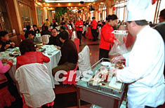 2月3日,北京老字號“全聚德”烤鴨店依然生意興隆。該店的烤鴨原料全部選自北京地區(qū),一直執(zhí)行嚴格的衛(wèi)生檢驗標準。作者:張雷