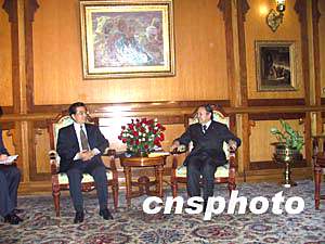 正在阿爾及利亞進行國事訪問的中國國家主席胡錦濤當(dāng)?shù)貢r間三日晚上與阿總統(tǒng)布特弗利卡舉行會談,雙方就發(fā)展中阿傳統(tǒng)友誼、深化雙邊友好合作以及共同關(guān)心的國際和地區(qū)問題深入交換了意見。中新社記者 齊彬 攝