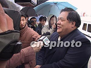 率團(tuán)參加馬尾元宵節(jié)燈會(huì)活動(dòng)的馬祖知名人士陳振清(右一),四日抵達(dá)馬尾港向馬尾鄉(xiāng)親致以新春的祝福。作者:劉可耕