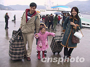 專程赴馬尾元宵賞燈會(huì)返鄉(xiāng)過(guò)節(jié)的三十多名馬祖鄉(xiāng)親,二月四日乘“閩珠二號(hào)”客輪抵達(dá)馬尾港。作者:劉可耕
