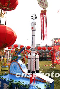 圖:元宵節(jié)上展示神州五號飛船模型