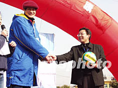 第十屆全國(guó)運(yùn)動(dòng)會(huì)將于二零零五年在江蘇舉行,二月五日江蘇省洪澤籍的中國(guó)女排副攻手趙蕊蕊委托父親將中國(guó)女排全體隊(duì)友簽名的排球送給家鄉(xiāng)父老鄉(xiāng)親,鼓勵(lì)大家健身奔小康。作者:丁東升