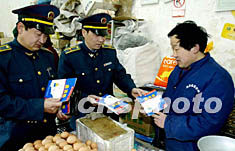 二月六日,北京東城工商分局工作人員為轄區(qū)十個(gè)集貿(mào)市場(chǎng)出售禽類產(chǎn)品的商戶送去新出版的預(yù)防“禽流感”的書籍。作者:羅偉