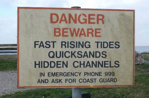 圖:莫克姆灣海灘豎起一塊警示危險(xiǎn)的標(biāo)牌