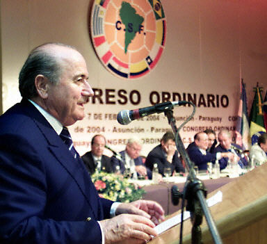 布拉特在亞松森出席南美足聯(lián)大會(huì)。會(huì)后布拉特宣布:國(guó)際足聯(lián)已經(jīng)決定,2010年世界杯在非洲舉行;2014年世界杯由南美國(guó)家主辦。2014年恰逢巴西足協(xié)成立100周年,因此南美足聯(lián)決定將主辦權(quán)給予巴西。