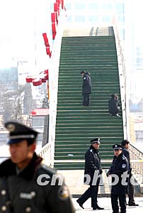 二月九日,北京有關(guān)專家在元宵燈展發(fā)生特大傷亡事故的密云縣密虹公園彩虹橋上進一步展開調(diào)查。中新社記者:盛佳鵬
