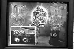 其二,大畫面里每個號球從搖獎機里滾下時,會與前面所出的號球之間有一個碰撞,來回滾動,然后再靜止,而小畫面中的號球滾下時卻顯得相當(dāng)?shù)钠椒(wěn),沒有碰撞和來回滾動現(xiàn)象。