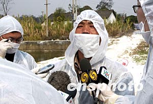 中外十四名記者,十二日深入中國內地首發(fā)禽流感疫點--隆安縣丁當電灌站采訪。中新社記者:宋吉河