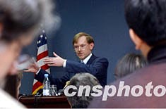 美國(guó)貿(mào)易代表佐利克二月十二日在北京舉行新聞發(fā)布會(huì),就世貿(mào)組織新一輪多邊貿(mào)易談判等相關(guān)問(wèn)題回答中外記者提問(wèn)。中新社記者:武仲林