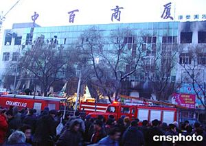 2月15日中午十一時二十分左右,吉林市中百商廈發(fā)生特大火災,截至十五時四十分,大火已被撲滅。據(jù)吉林省有關(guān)部門提供的情況,截止十六點四十分,火災至少造成五十一人死亡、已經(jīng)有一百二十名群眾被救出,其中受傷七十一人。有關(guān)起火原因、傷亡情況正在調(diào)查之中。作者:朱萬昌