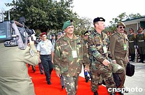 上午十一時(shí)三十分,以英國(guó)駐華武官科爾準(zhǔn)將為團(tuán)長(zhǎng)的武官團(tuán)乘坐一架解放軍空軍專機(jī)抵達(dá)香港國(guó)際機(jī)場(chǎng),受到廣州軍區(qū)、國(guó)防部、香港駐軍、香港特區(qū)政府有關(guān)負(fù)責(zé)人的熱情迎接。