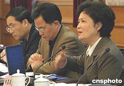 二月十八日,中國(guó)教育部舉辦新聞發(fā)布會(huì)介紹基礎(chǔ)教育課程改革措施。教育部新聞發(fā)言人朱慕菊(右一)表示,要通過(guò)基礎(chǔ)教育課程改革促進(jìn)學(xué)生健康快樂(lè)地成長(zhǎng)。中新社記者:張勤
