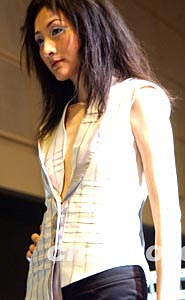 “2004香港教育及職業(yè)博覽會(huì)”二月十九日在香港會(huì)展中心開幕,圖為模特展示職業(yè)服飾作品。 作者:錢興強(qiáng)