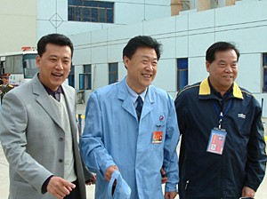 中國工程院院士、中國載人航天工程總設(shè)計師王永志(中)與“神舟”五號載人飛船總指揮袁家軍、“神箭”——“長征二號F”運載火箭總指揮黃春平在一起
