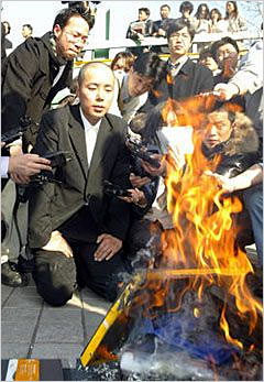 19日下午3時(shí),在位于漢城江南區(qū)驛三洞的公司總部停車場,Netian娛樂公司在60多名記者的目睹下燒毀了1個(gè)拉面箱分量的第一次拍攝的照片和視頻膠卷。